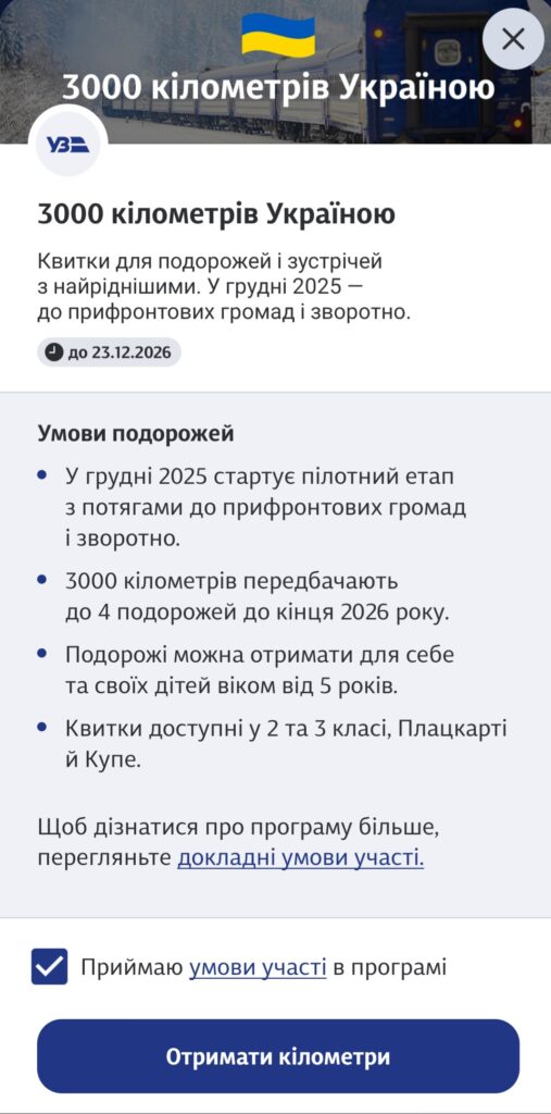 Квитки за програмою «3000 км Україною» вже доступні в застосунку Укрзалізниці