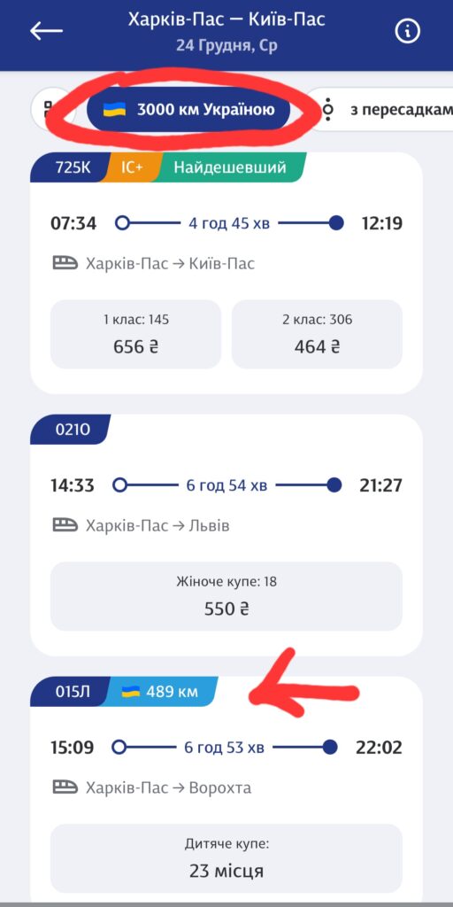 Для цього слід “увімкнути” (натиснути і стане синім) умову “3000 км Україною”.