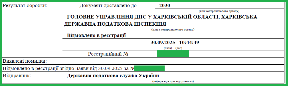 Якщо ви подавали заяву окремо, то у відповідь отримаєте “червону” квитанцію № 2 з відмовою. 👇 Далі на цю заяву також надійде відповідний лист.