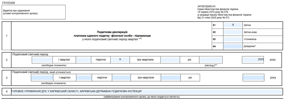 Декларація з єдиного податку 3 групи за 9 місяців 2025 року