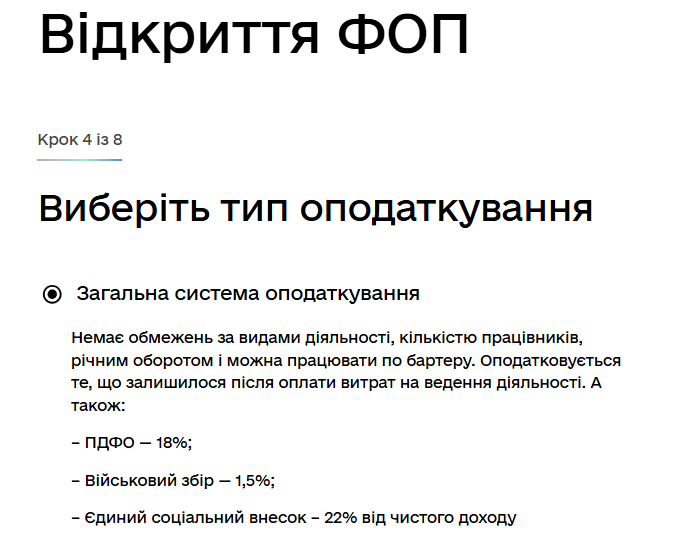 ‼️Якщо поставити “Так”, система на наступному кроці не дозволить обрати групу єдиного податку – відповідні поля будуть заблоковані. Єдиний варіант – загальна система.
