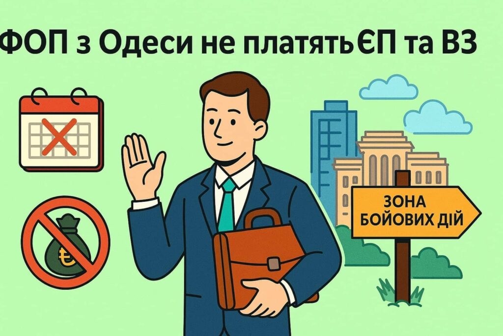 | ФОП 1 – 2 групи, зареєстровані до 26.05.2025 | Податкова адреса знаходиться у м. Одеса (територія можливих бойових дій) | Мають право не сплачувати ЄП і ВЗ |