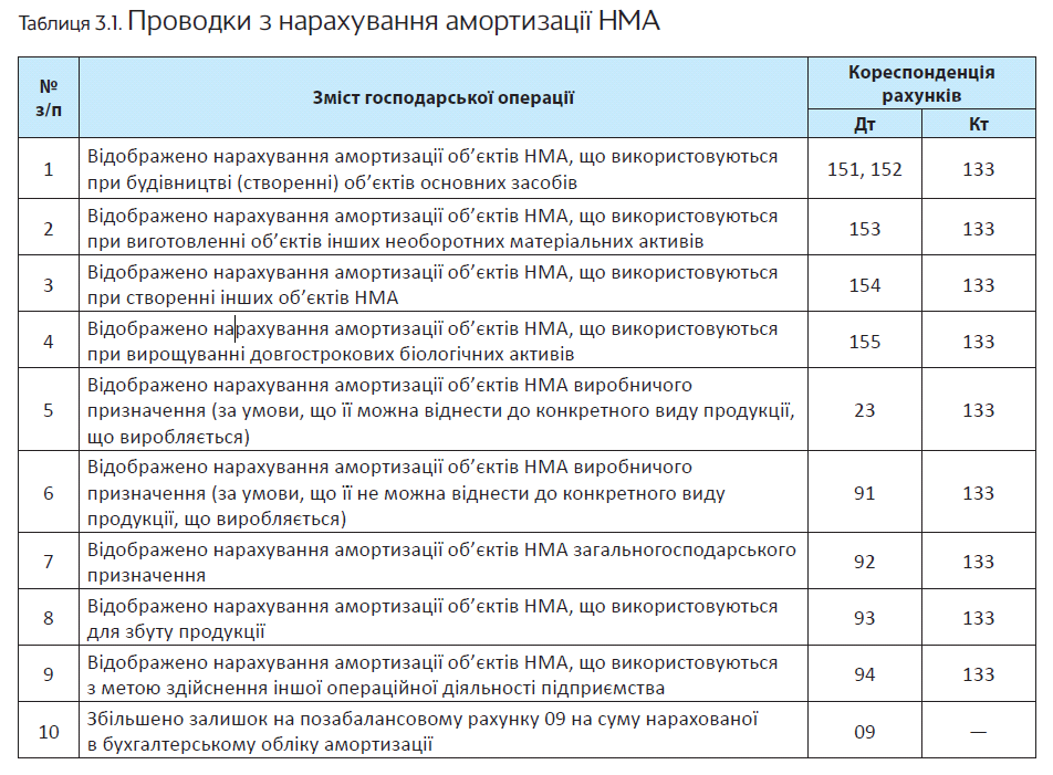Втрати від зменшення корисності об’єкта НМА включають до складу інших витрат підприємства з одночасним збільшенням суми накопиченої амортизації за таким об’єктом (Дт 972 — Кт 133).