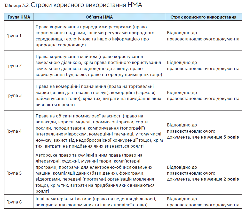 - У податковому обліку строк корисного використання НМА, що встановлюється підприємством, не має бути менше строків, визначених у п.п. 138.3.4 ПКУ.