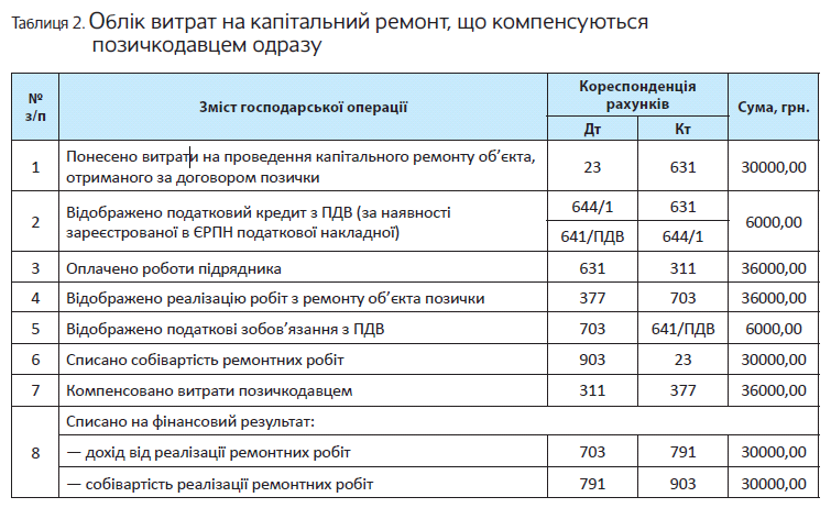 Якщо ж позичкодавець сам здійснив капремонт або відшкодував витрати на нього користувачеві, то, звісно, ні про який дохід і, відповідно, обкладення ПДФО і ВЗ мови бути не може.