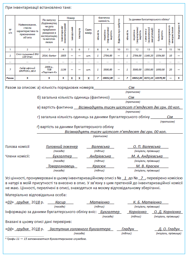 2.2. Оформляємо інвентаризацію основних засобів документально