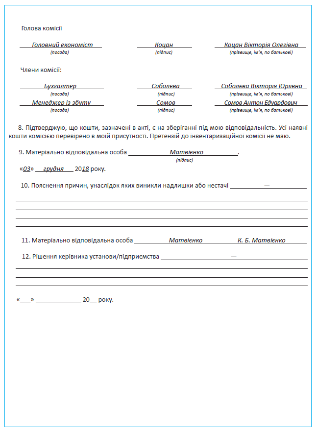 Остаточно всі крапки над «і» розставить зразок заповнення Акта про результати інвентаризації наявних коштів. Його наведено на с. 50.