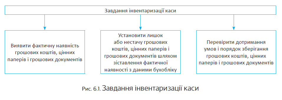 Інвентаризація каси ставить перед собою низку завдань. Наведемо їх на рис. 6.1 (див. с. 48).