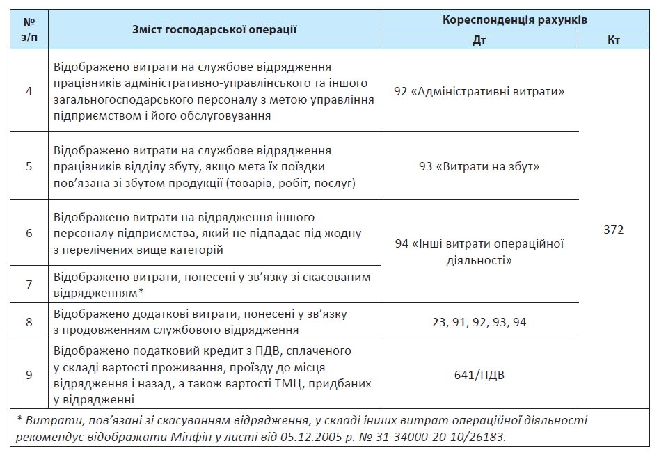 - Для обліку розрахунків з відрядженими працівниками використовують субрахунок 372.