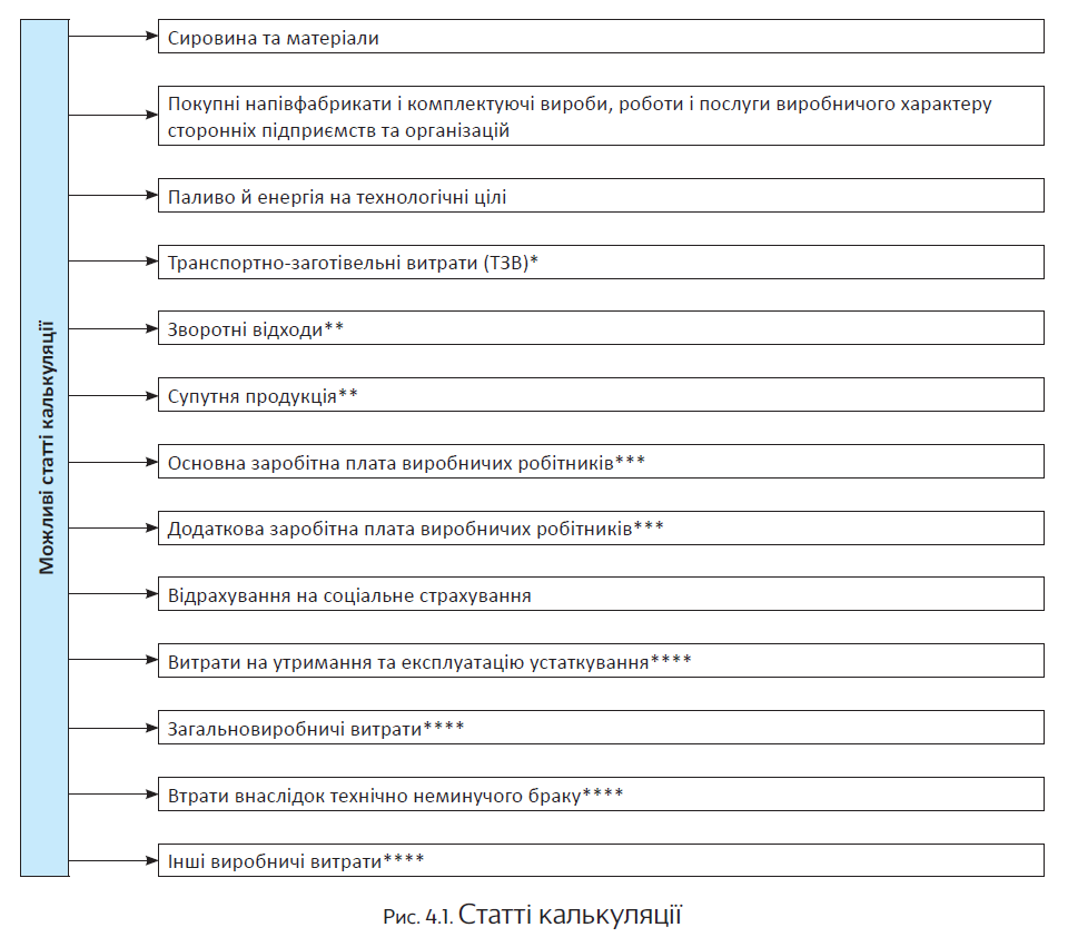 До цієї статті калькуляції включають вартість: