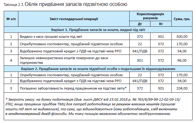 Варіант 2. Працівник придбаває запаси за власні кошти, а підприємство відшкодовує понесені ним витрати.