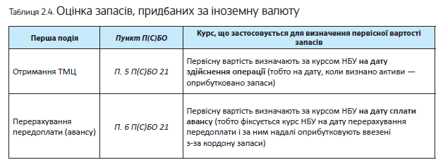 - Первісна вартість запасів, придбаних за інвалюту, залежить від того, яка подія була першою — надходження ТМЦ чи їх оплата.