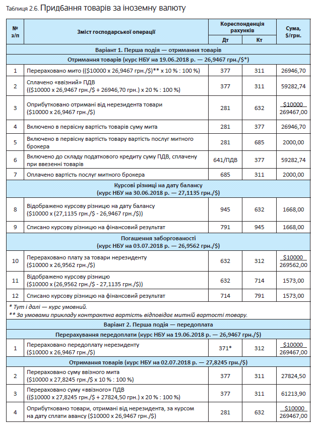 Як імпорт товарів відобразити в бухгалтерському обліку підприємства, див. у табл. 2.6 на с. 17.