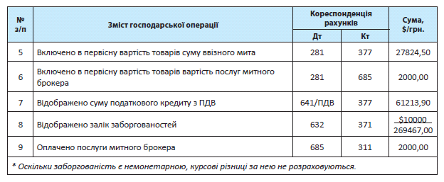 Приклад 2.3. Підприємство-резидент придбаває в нерезидента товари вартістю $10000. Мито, сплачене при ввезенні товарів, становить 10 % (умовно). Вартість послуг митного брокера — 2000,00 грн. (без ПДВ).