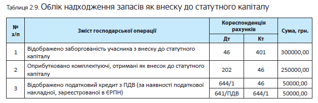 - Якщо на момент внесення запасів до статутного капіталу підприємство — емітент корпоративних прав уже зареєстроване платником ПДВ, то суму цього податку воно відобразить у складі податкового кредиту.