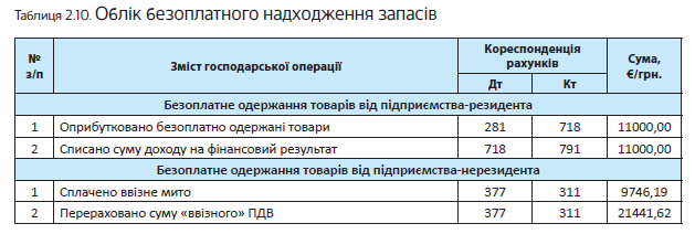 Приклад 2.7. Підприємство безоплатно одержує товари: