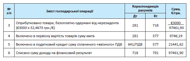 Якщо ж запаси безоплатно одержані від нерезидента, ситуація зовсім інша. Адже «ввізний» ПДВ у цьому випадку все одно нараховується, бо «імпортний» ПДВ сплачується не дарувальнику-нерезиденту, а до бюджету України.