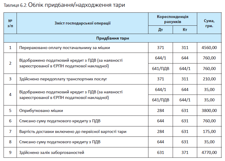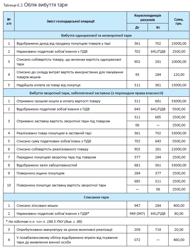 * Детально про облік тари ви можете прочитати в підрозділі 6.2 на с. 86.