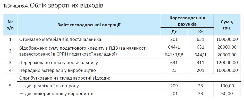 Приклад 6.7. У підприємства у складі запасів значаться відходи: