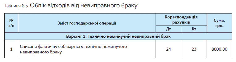 Зазначені операції в обліку підприємство відобразить так, як наведено в табл. 6.9 на с. 106.