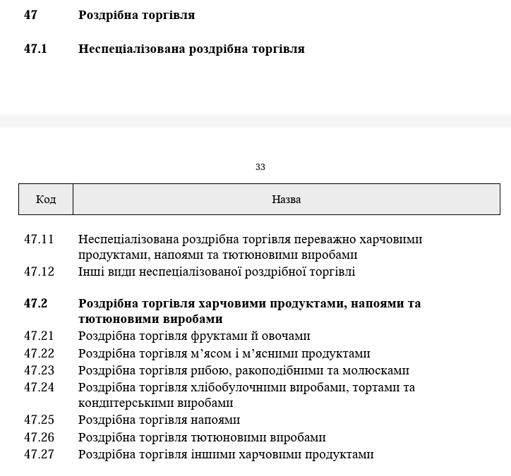 Роздрібна торгівля так і залишиться у розділі 47. При цьому будуть певні зміни, зокрема: