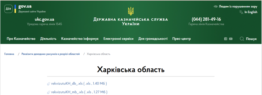 Реквизит рахунків для обліку доходів державного бюджету в Харківській області