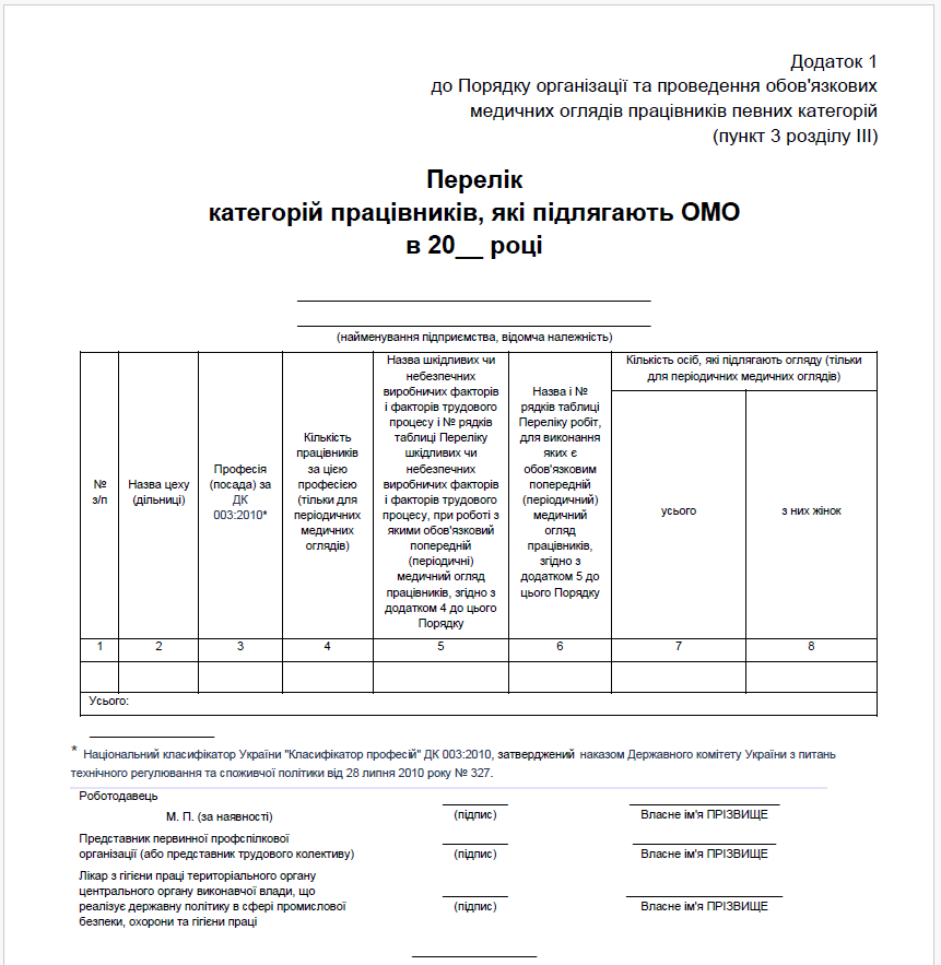то тепер, за Порядком № 1393, ключовим документом стає Перелік категорій працівників, які підлягають ОМО (форма — додаток 1 до Порядку № 1393).