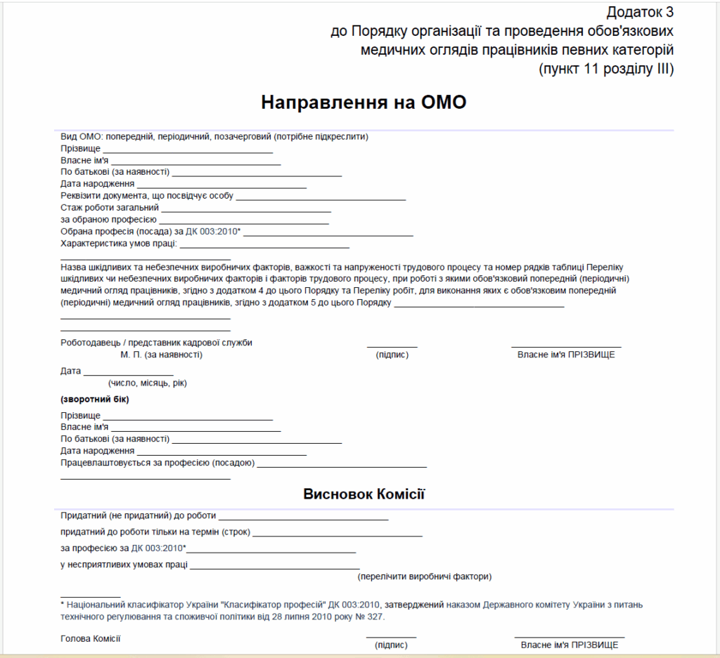 - Направлення на ОМО за формою з додатка 3 до Порядку № 1393.