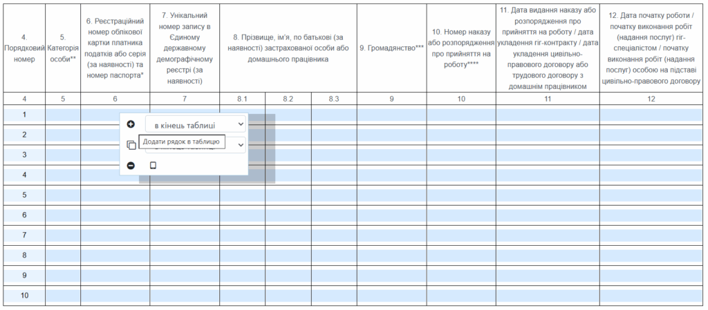 Крім того, в електронній формі Повідомлення можна додавати потрібну кількість рядків.