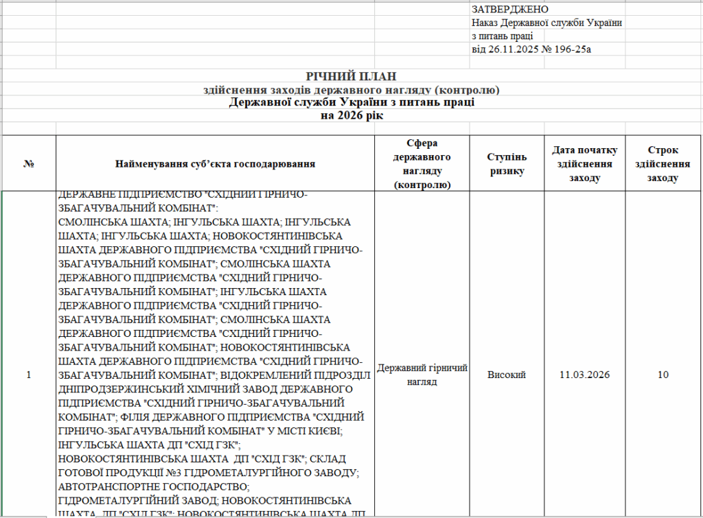 Завантажити Річний план перевірок Держпраці на 2026 рік можна тут 👇