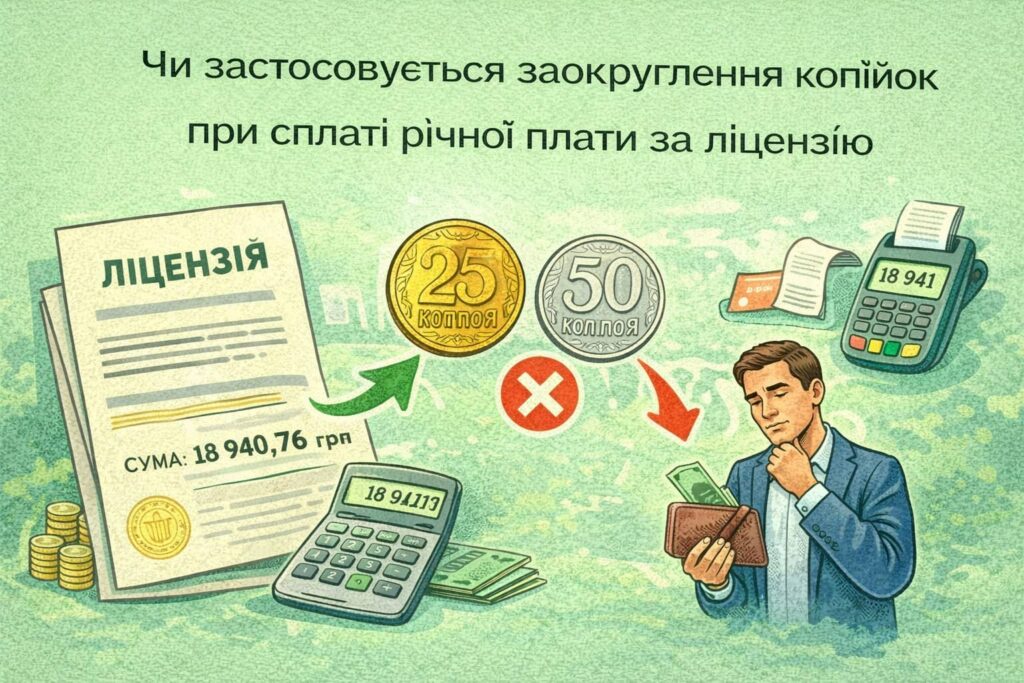 🪙 Чи застосовується заокруглення копійок до цілої гривні при сплаті річної плати за ліцензію, якщо розрахунок здійснюється від мінімальної заробітної плати: роз’яснення від ДПС