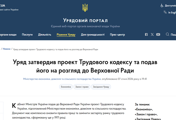 7 січня документ уже передали до Верховної Ради, тож процес офіційно запущено. Саме зараз варто розібратися: що саме хочуть змінити і до чого роботодавцям та працівникам готуватися вже сьогодні.