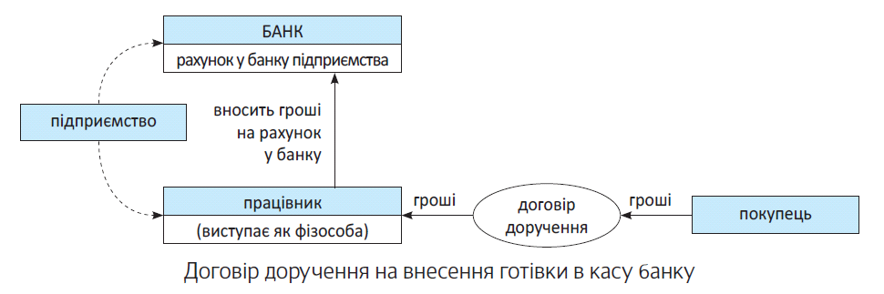 ГКУ), если предоставление последнего предусмотрено условиями договора поручения. В итоге за покупателя деньги в банк отнесет стороннее лицо (см. рисунок).