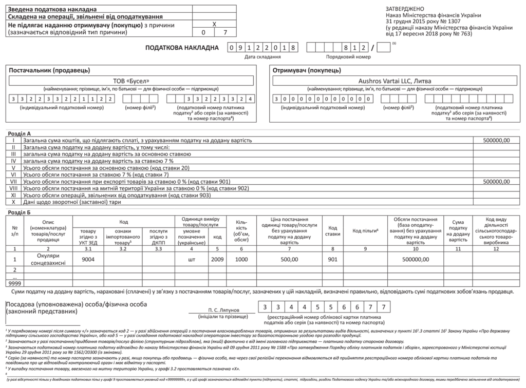 — «Індивідуальний податковий номер» — условный ИНН «100000000000»;