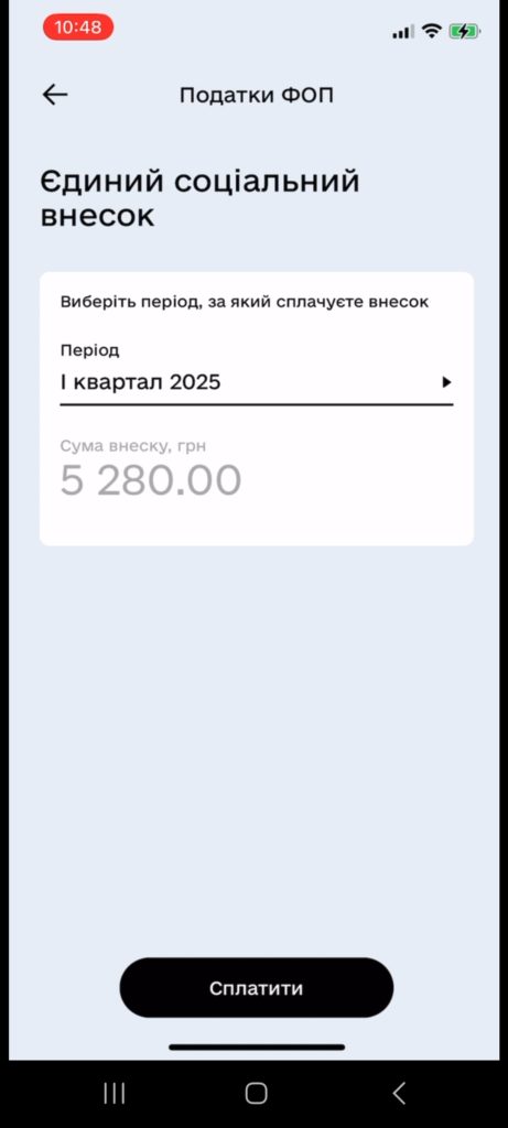 В приложении Дія выбираем раздел «Податки ФОП« ➝ Выбираем Єдиний соціальний внесок