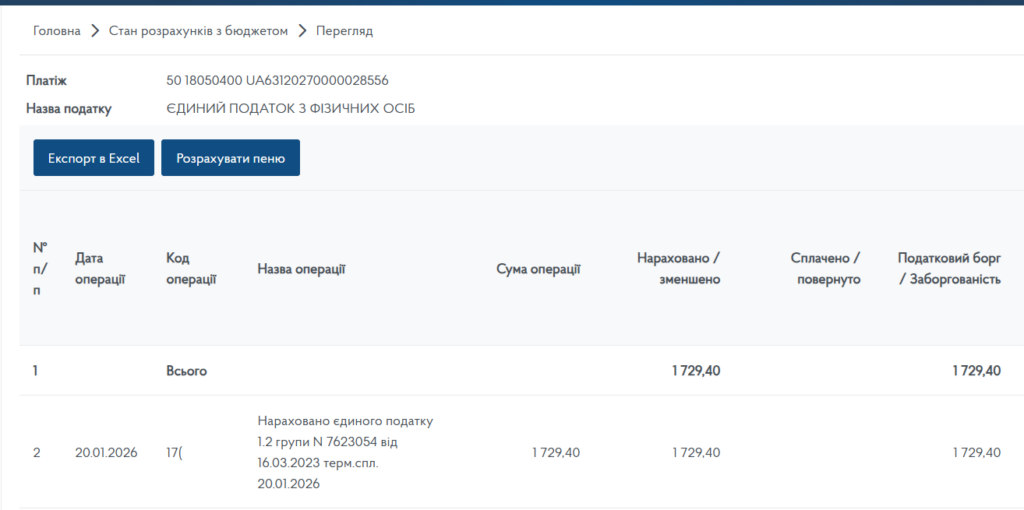 🔊 Водночас єдиний податок нараховано вірно в сумі 1729,40 грн за ставкою 20% від мінімальної зарплати (8647 грн х 20%).