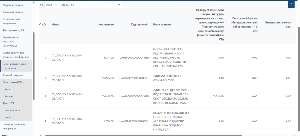 5️⃣ У розділі «Стан розрахунків з бюджетом» перевірте: