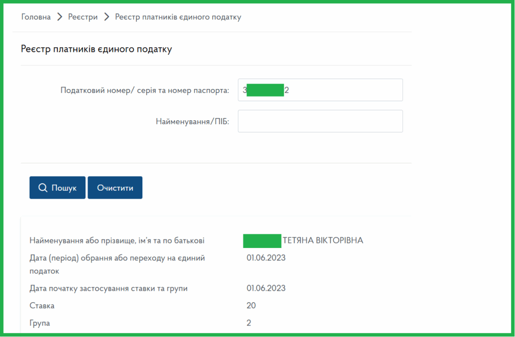 Варіант 2. Перевірити в режимі он-лайн у Реєстрі платників єдиного податків.