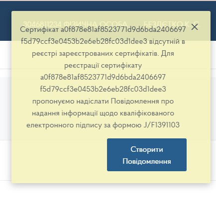 - 2 квитанція – підтвердження реєстрації нового підпису в системі.