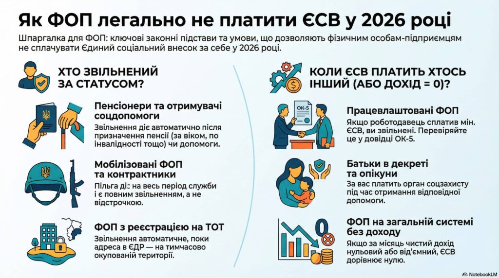 Які ФОП можуть не платити ЄСВ за себе у 2026 році