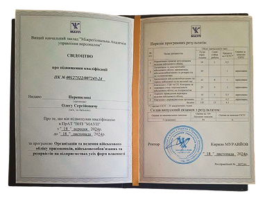 Ви отримаєте свідоцтво встановленого зразка від Вищий навчальний заклад «Міжрегіональна академія управління персоналом»